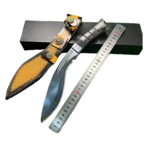 Einteiliges Messer aus 9Cr18Mov-Stahl mit handgeprgter Lederscheide,Kukri Messer